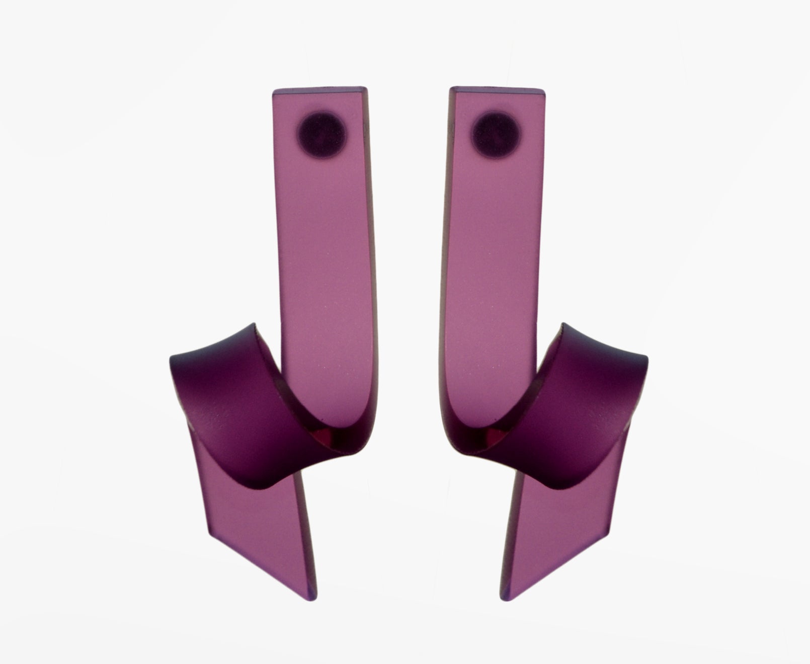 A dark violet ribbon gracefully curls into a wave-like loop for sculptural statement earrings. With modern minimalism, these earrings elevate any outfit with sophistication and a dash of boldness.