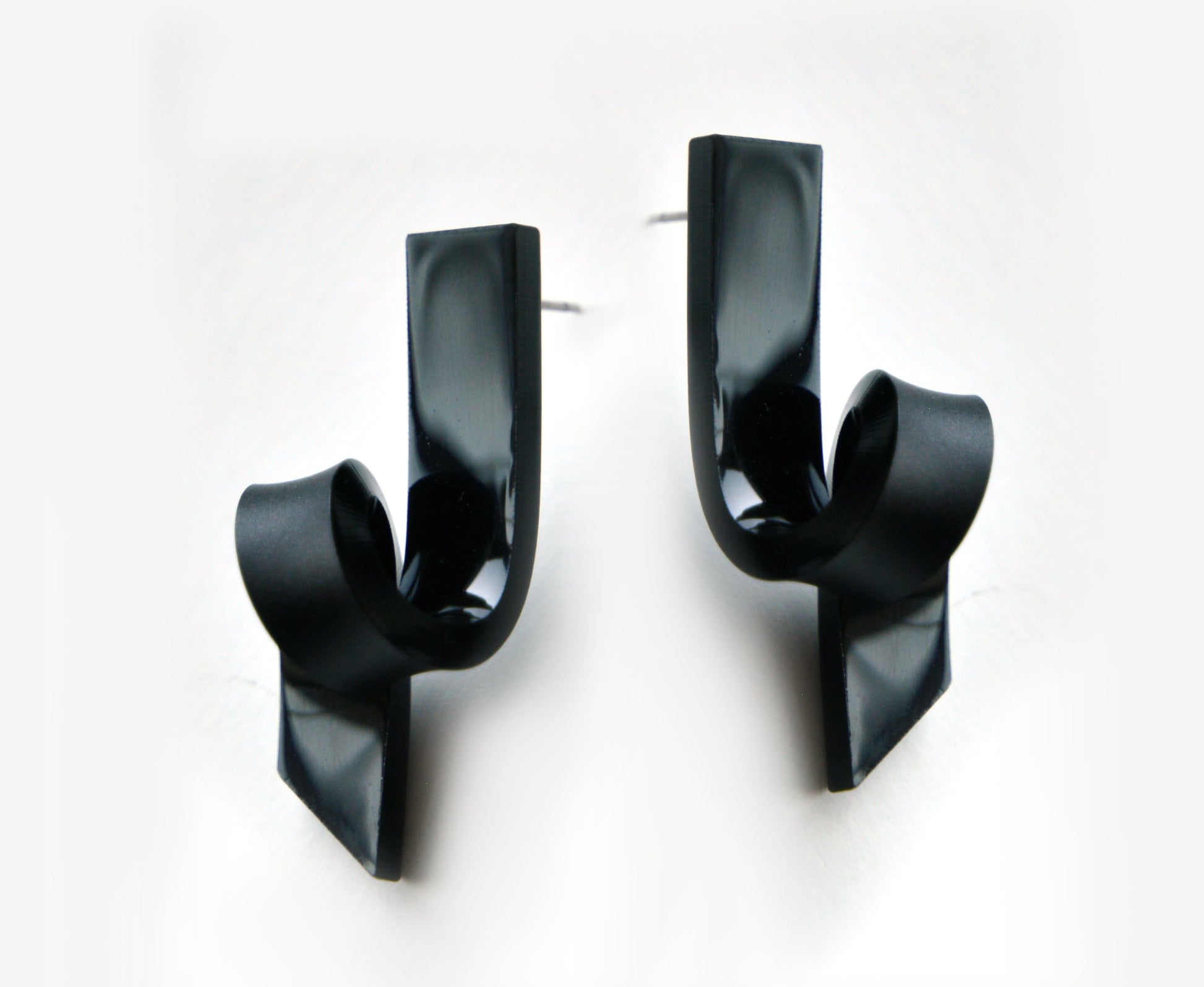 A miniature take on a true classic. For those familiar with the original Barrel Wave earrings, this is the new 'bite-size' version. A ribbon of frosted acrylic gracefully curls into sculptural earrings. With modern minimalism, these earrings elevate any outfit with a dash of boldness.