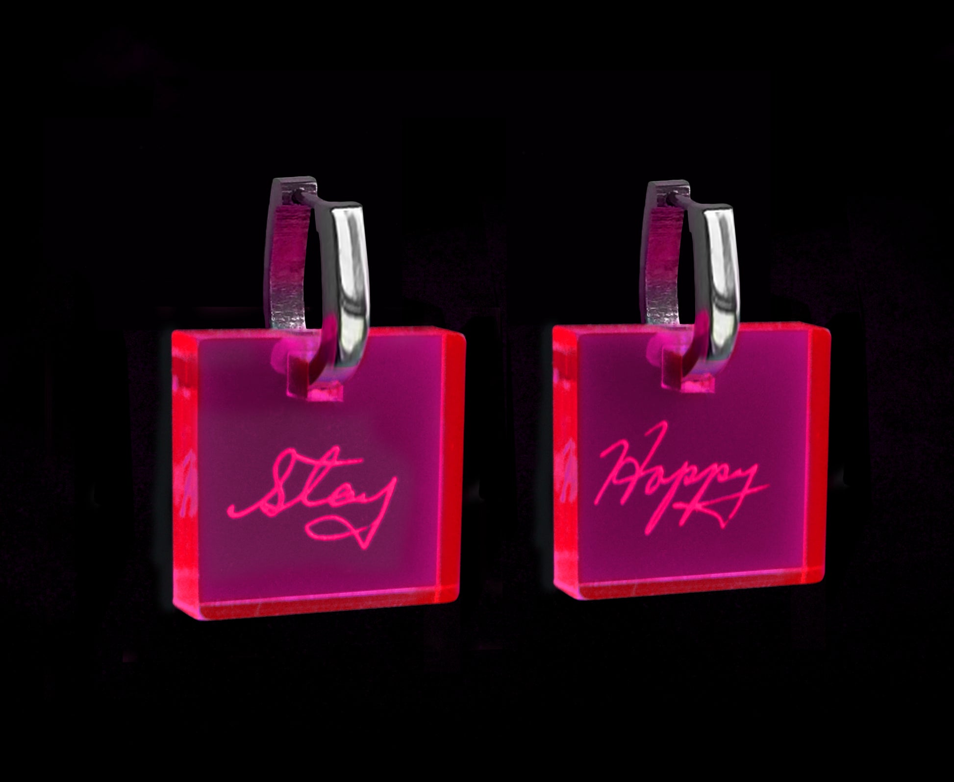 Billie Holiday Handwriting Earrings - 'Stay Happy'