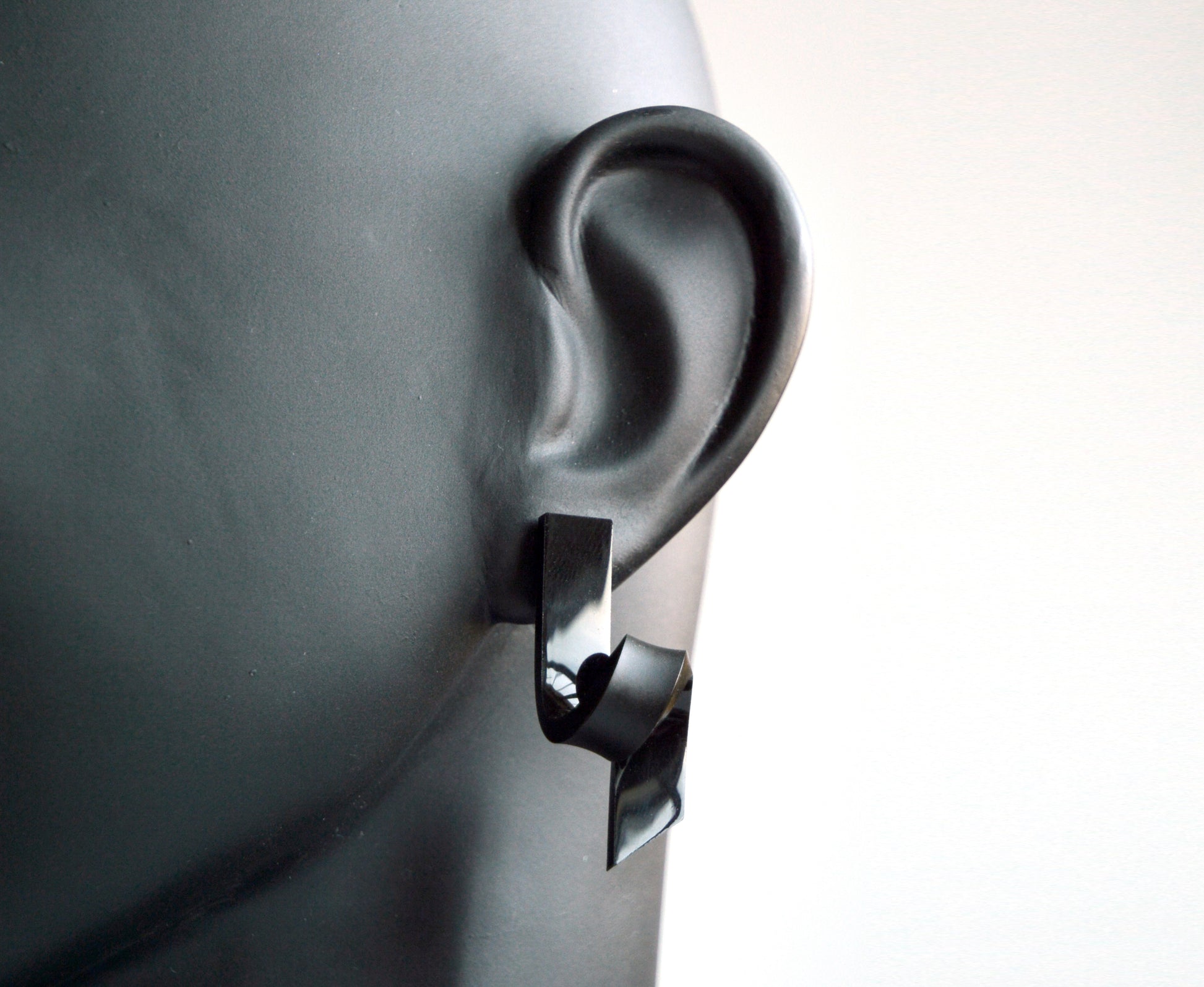 A miniature take on a true classic. For those familiar with the original Barrel Wave earrings, this is the new 'bite-size' version. A black ribbon of acrylic gracefully curls into sculptural earrings. With modern minimalism, these earrings elevate any outfit with a dash of boldness.