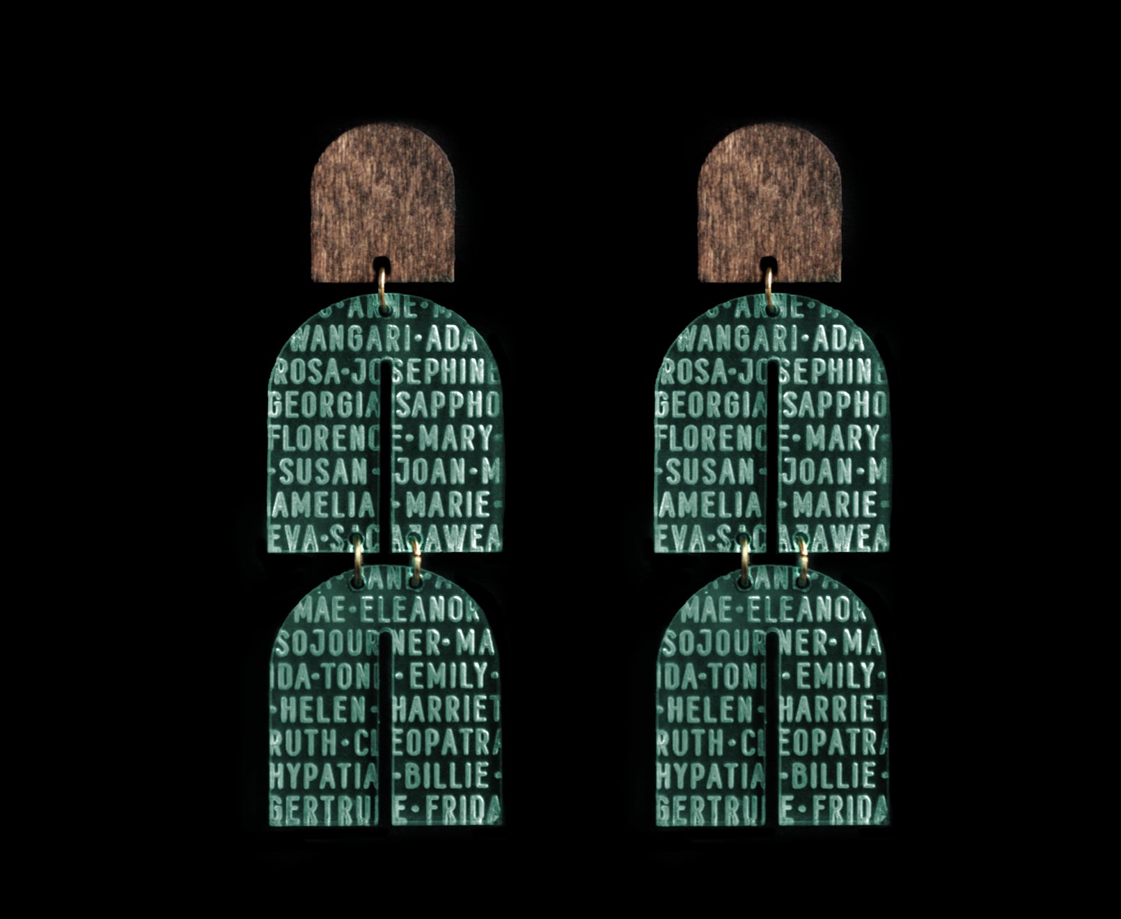 Etched with the names of remarkable women, these earrings celebrate some of history's most influential females. And the featherweight design means you can wear them all day without total comfort.