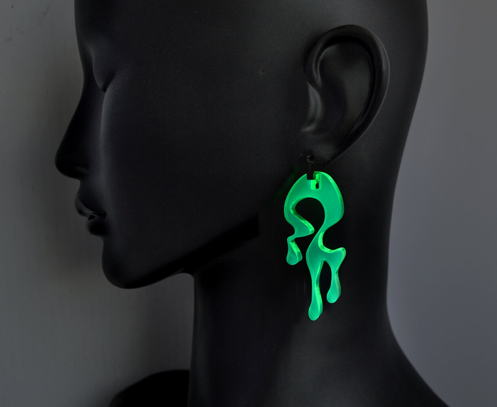 Illuminate your fun style with the radiant Slimer Earrings. Adorned with the oversized shape of melting goo, these earrings are sure to make you glow—during the day and under the blacklight. They're light enough not to weigh you down but big enough to captivate attention.