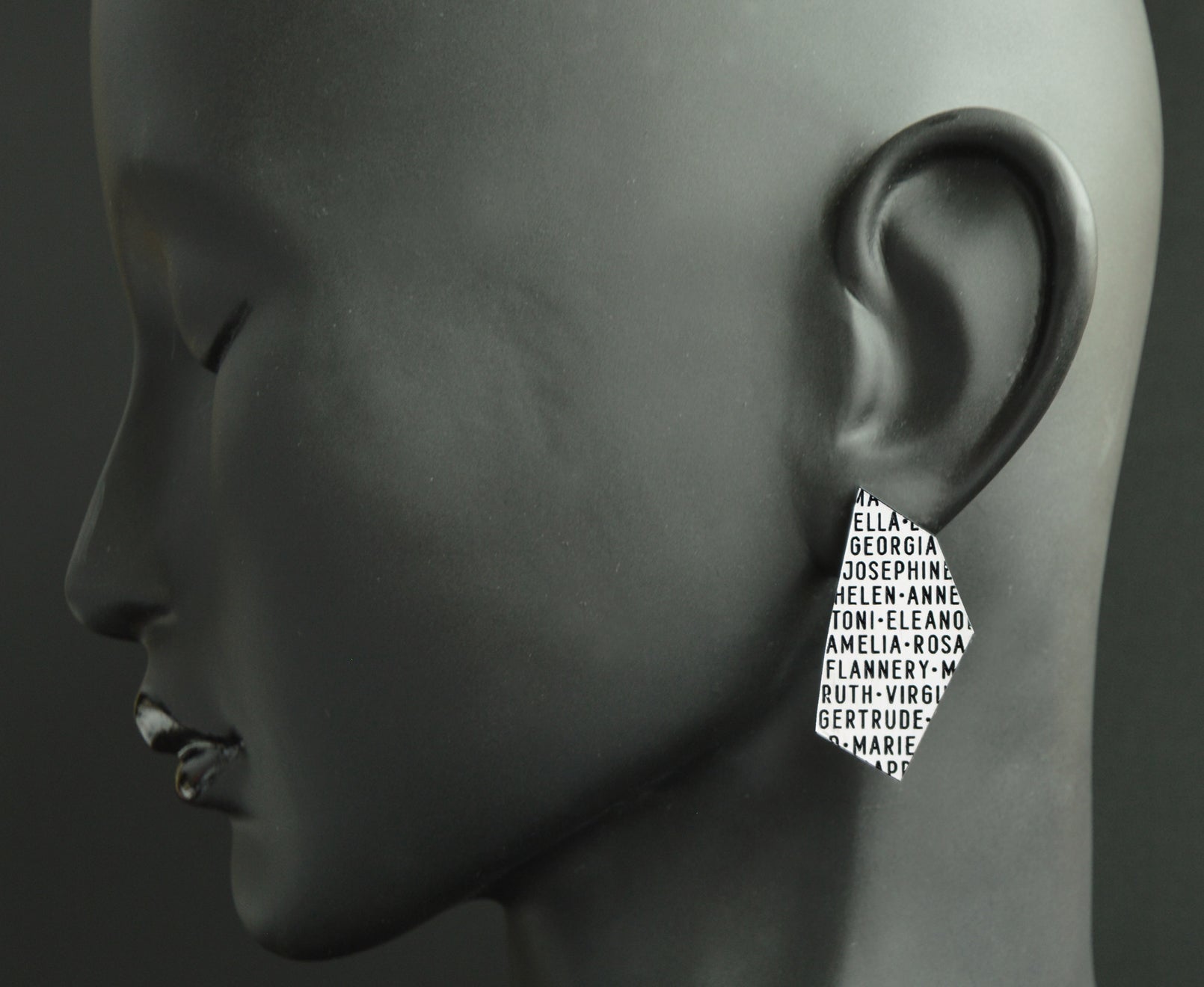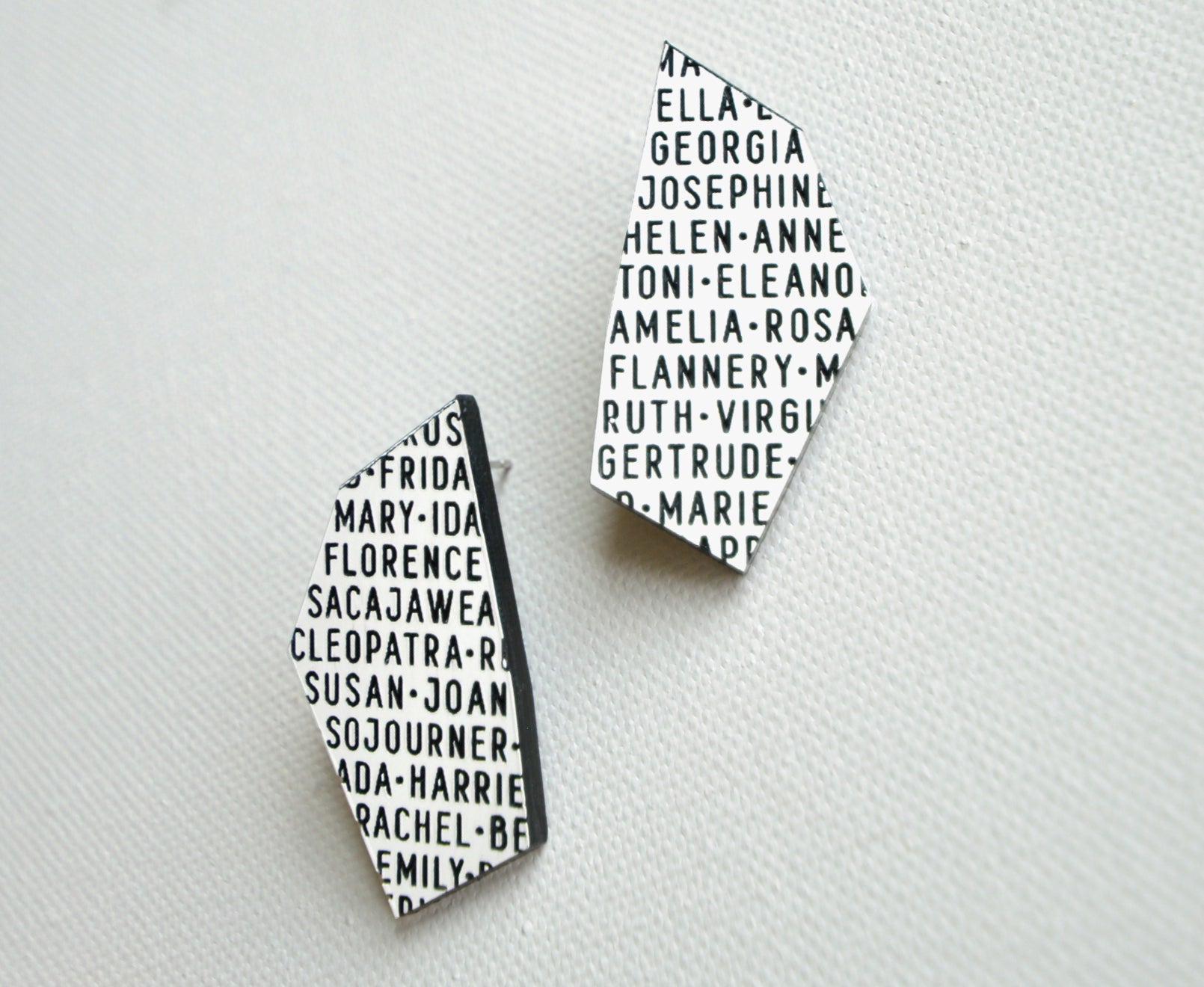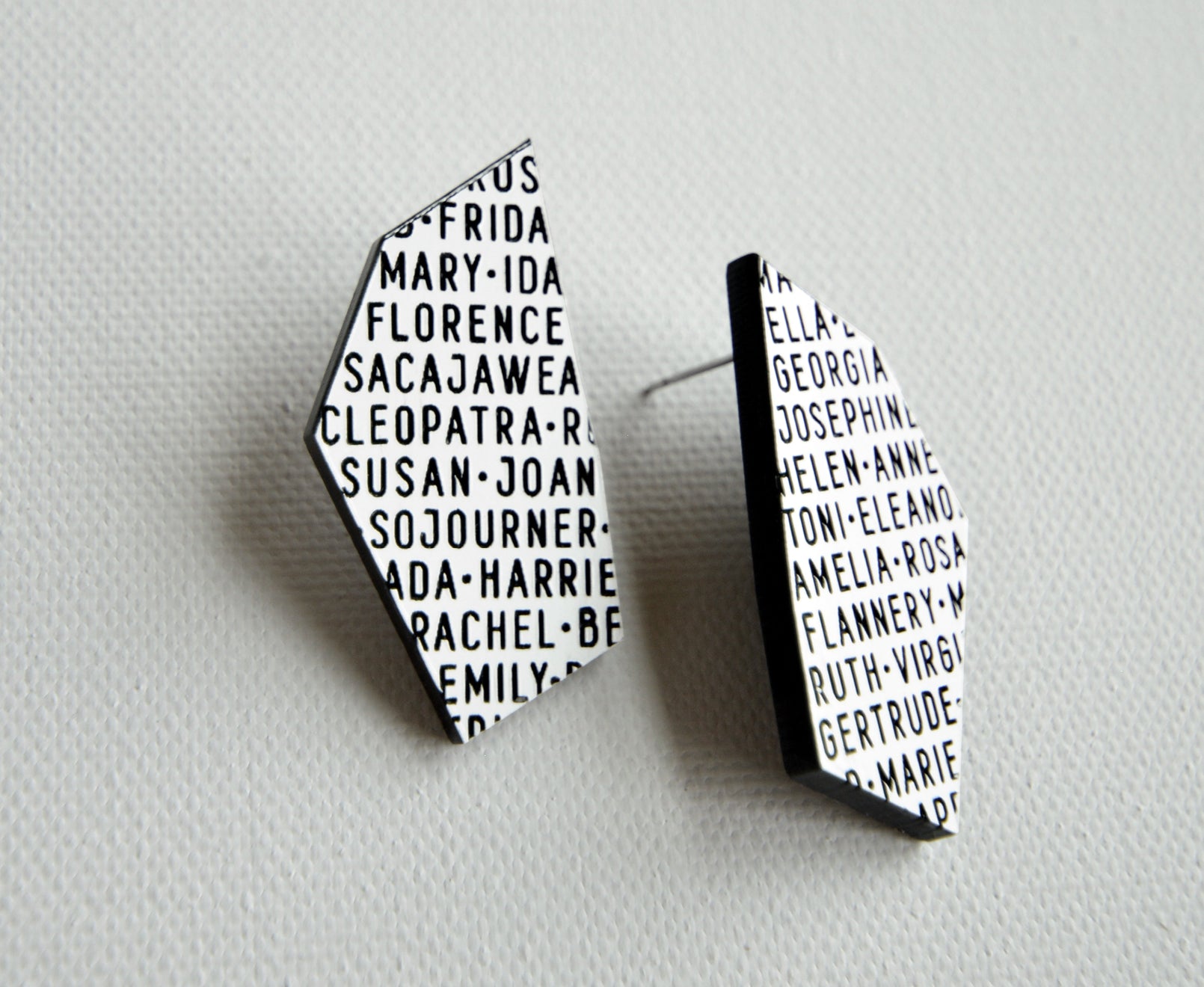 Etched with the names of remarkable women, these earrings celebrate some of history's most influential females. And the featherweight design means you can wear them all day without even realizing it.